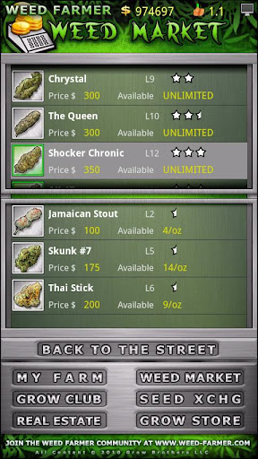 Bem-vindo Fazendeiro Weed! Prepare-se para aceitar os desafios e colher os frutos como você aumentar suas habilidades crescentes e contas bancárias por cultivar 30 variedades diferentes de plantas de cannabis. Gerenciar cada etapa do crescimento de uma planta e produção, desde a germinação das sementes ao final da colheita, você controla tudo.